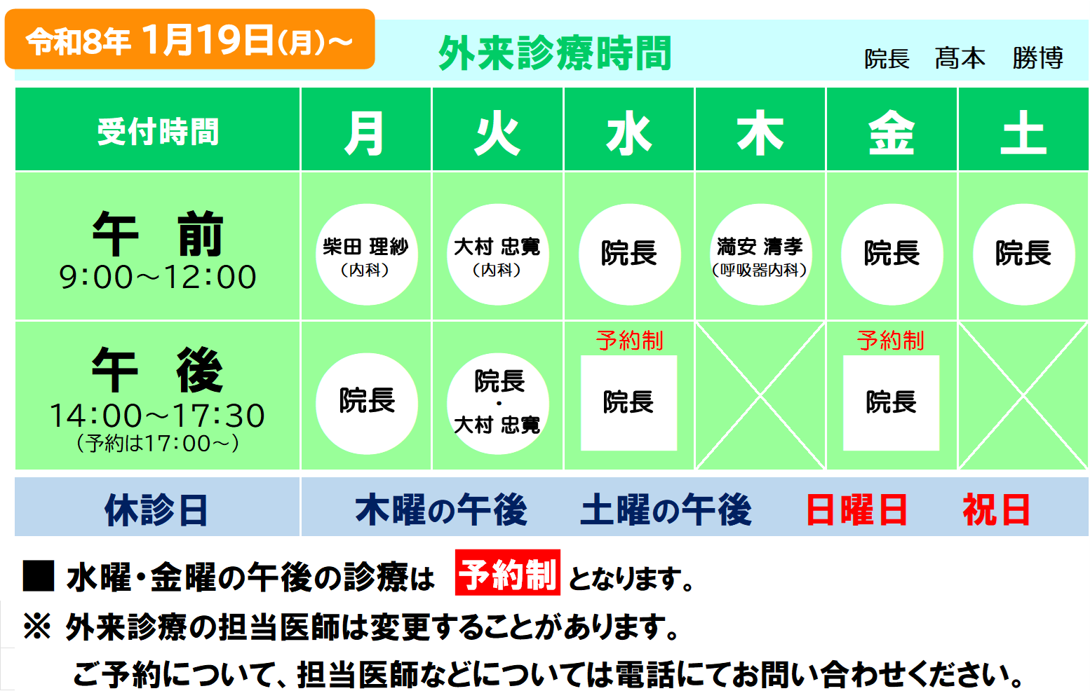 外来診療体制変更のお知らせ