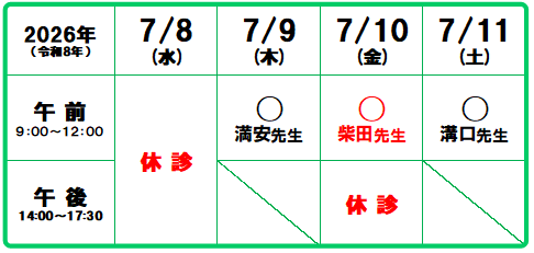 (柴田先生 休診)
