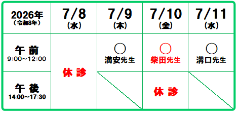 午前 通常通り (外来担当:柴田先生)